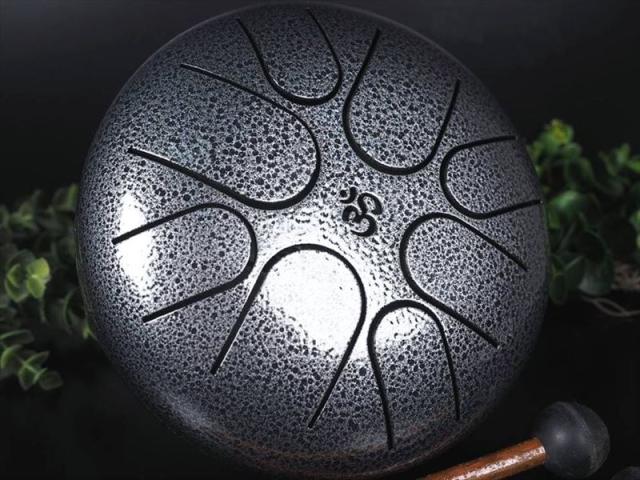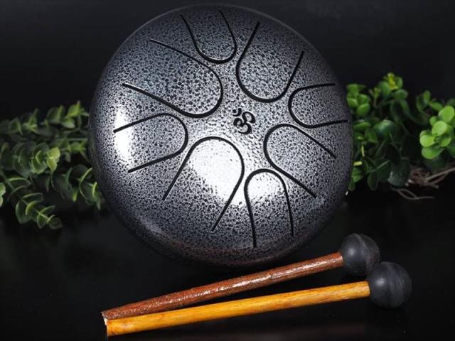 癒しと浄化の音色 タングドラム スリットドラム ブラックシルバータイプ 高さ約8.5cm 直径約16.5cm マレット2本&キャリーバッグ付属 瞑想・ヨガ・サウンドセラピー 動画あり ss-30