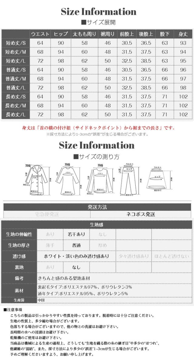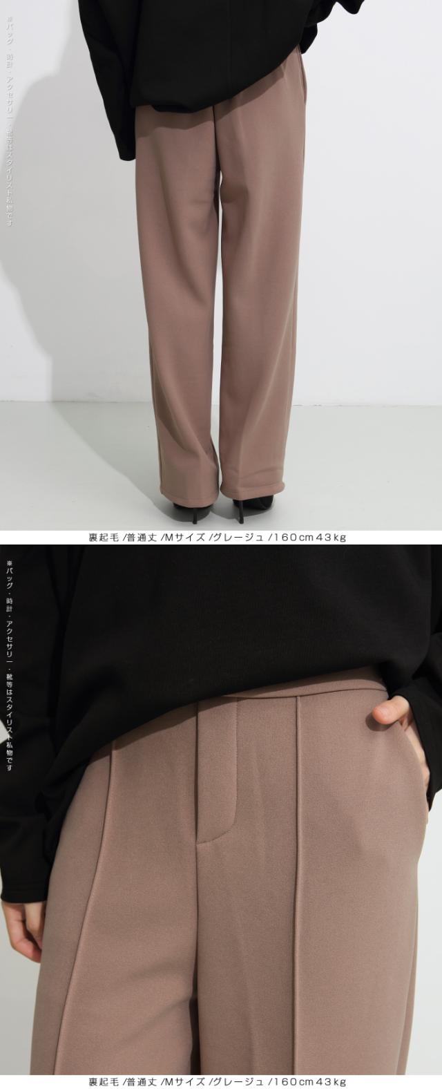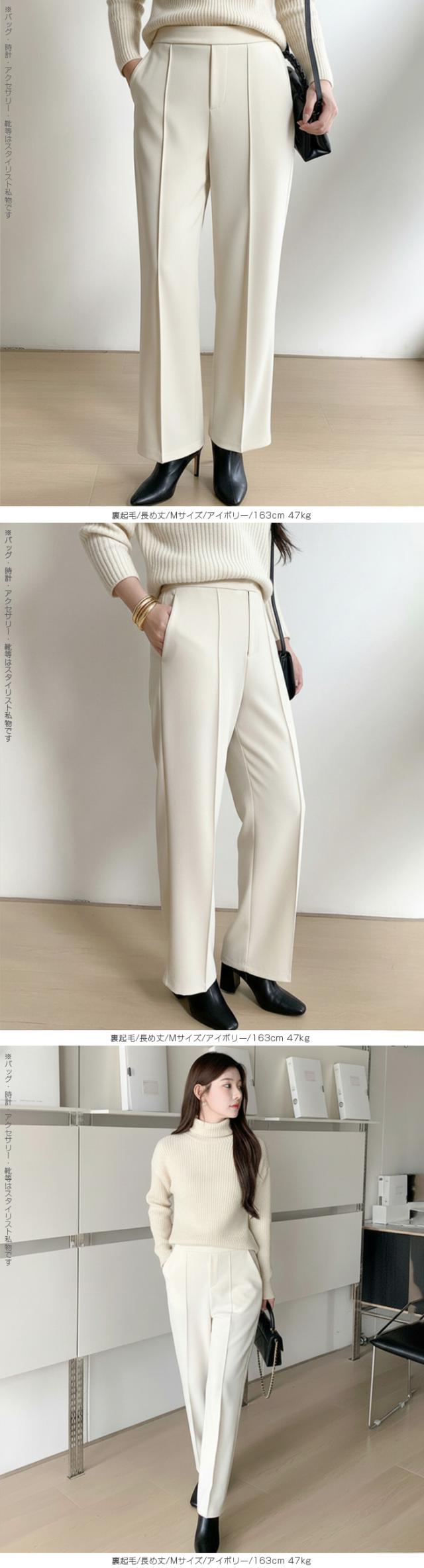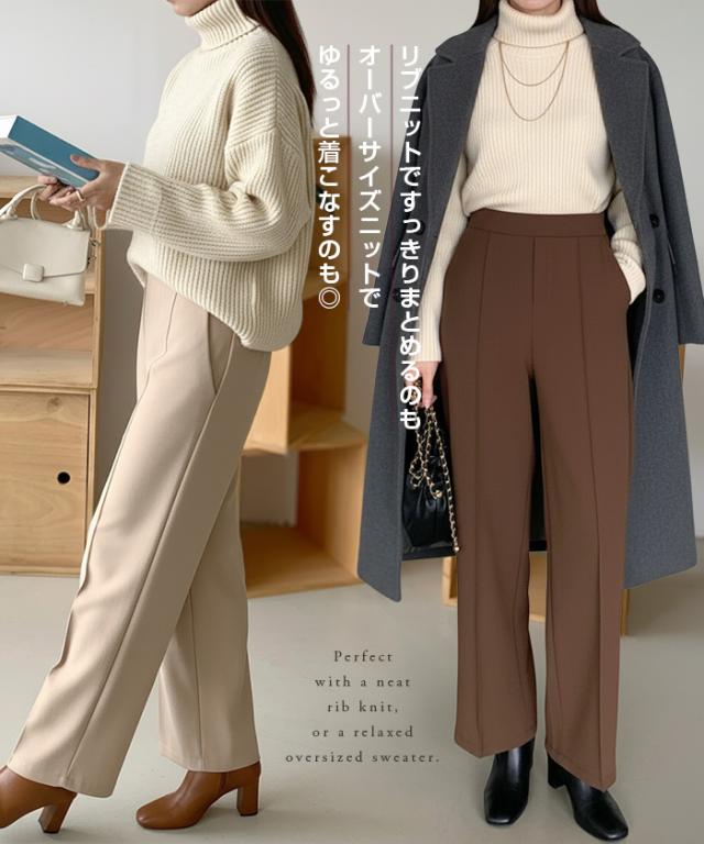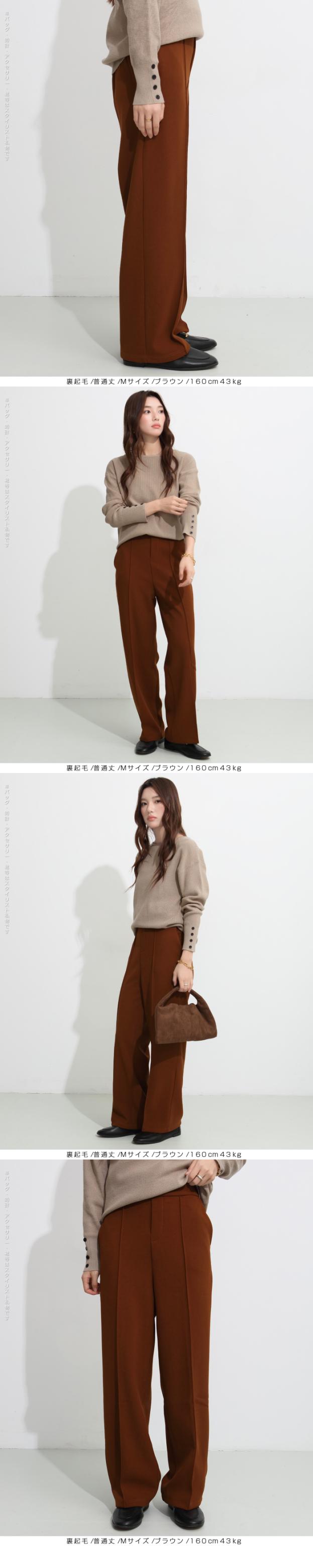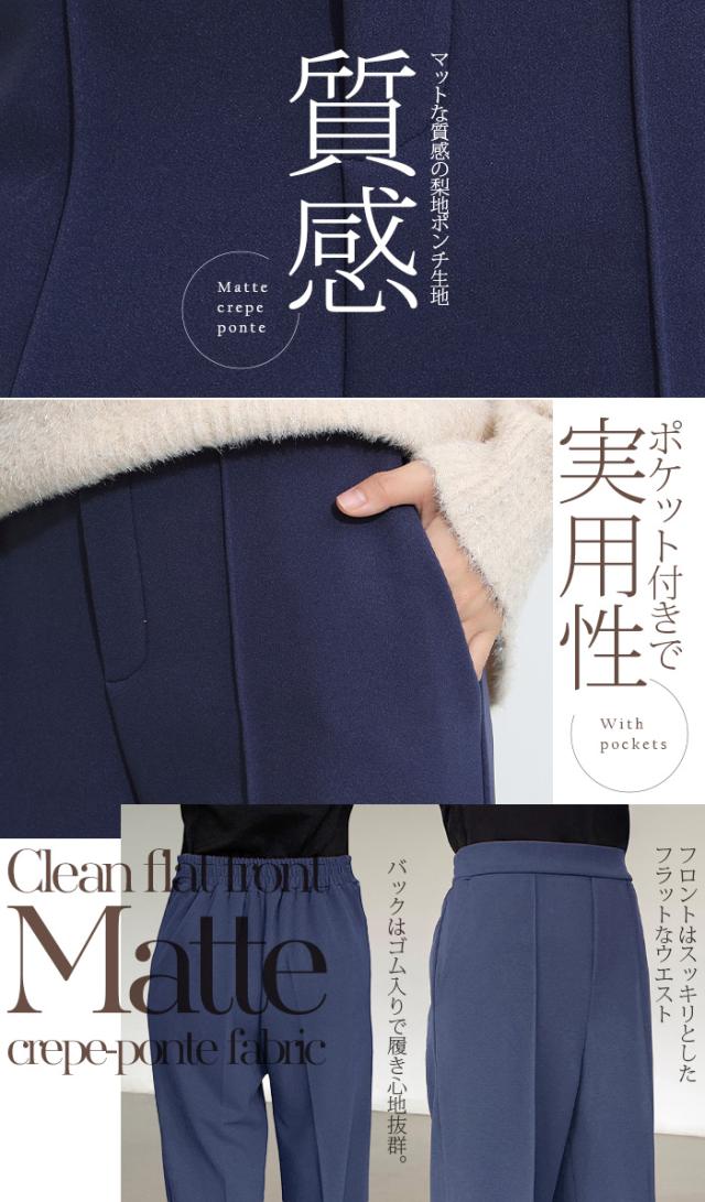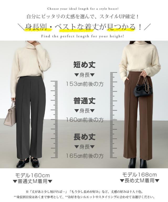 【 選べる2生地 ピンタック入りストレッチワイドパンツ 】 ストレッチ性があり動きやすく、 ピンタック入りできれいめに穿けるワイドパンツ。 あったかミンク風裏起毛と通年タイプの生地からお選び頂けます。 ウエストにはゴムが入っているため、一日中快適に履けます。 センタープレスとピンタックで美しいシルエットを保ち 短め丈、普通丈、長め丈の3種類から選べるので 身長に合わせたフィット感が得られる オフィスでもカジュアルでも使える万能パンツで、 豊富なカラーバリエーションも魅力。 " 《商品ポイント》 センタープレス入りで脚長&美脚効果抜群 ほどよい落ち感とストレートシルエットで体型カバーにも◎ ハリ感のある上質素材でシーンレスに活躍 シンプルデザインで合わせるトップスを選ばない万能パンツ カラーバリエーション豊富で着回し自在 《デザイン・シルエット》 ストンと落ちるストレートラインで美しいレッグラインを演出 センタープレスが縦のラインを強調し、脚を長くすっきり見せる ウエストはすっきりとしたフラット仕様でトップスインも映えるデザイン 程よいゆとりがありながらもだらしなく見えない絶妙シルエット 《コーディネート提案》 オフィスコーデ:シャツやジャケットを合わせてきちんと感あるスタイルに カジュアルコーデ:ゆるニットやTシャツと合わせて抜け感のあるリラックススタイルに トレンドコーデ:クロップド丈トップスと合わせてハイウエストを強調し、スタイルアップ シーズンレス活用:春夏はブラウスやTシャツに、秋冬はニットやコートに合わせて年中着回し可能 《サイズ・カラーバリエーション》 カラー:裏起毛タイプ…ブラック / アイボリー / グレージュ / ネイビーブルー / ブラウン / コーヒーブラウン / バーガンディ 通年タイプ…ブラック / グレージュ / ネイビーブルー / ダークブラウン サイズ:裏起毛タイプ…短め丈 / 普通丈 / 長め丈 / S / M / L 通年タイプ…短め丈 / 普通丈 / 長め丈 / M / L 《素材・機能性》 ・素材:裏起毛タイプ…ポリエステル97%、ポリウレタン3% 通年タイプ…ポリエステル95%、ポリウレタン5% ・透け感:裏起毛タイプ…なし 通年タイプ…淡いカラーは透ける場合がございます。 ヌーディーカラーのインナー着用をお願いいたします。 ・伸縮性…若干あり ・厚み:裏起毛タイプ…厚手 通年タイプ…普通(春〜秋に◎) |