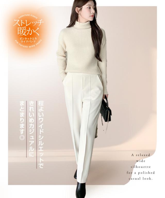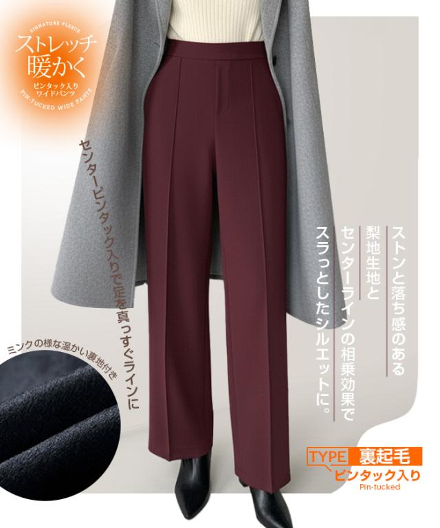 40%OFFクーポン配布中!【裏起毛&ストレッチ】 ストレッチ ワイドパンツ レディース 裏起毛 パンツ きれいめ 高身長&低身長 M/Lサイズ展開 通勤からカジュアルまで使える センタープレスパンツ 通勤 ウエストゴム【ストレッチワイドパンツ】 秋新作