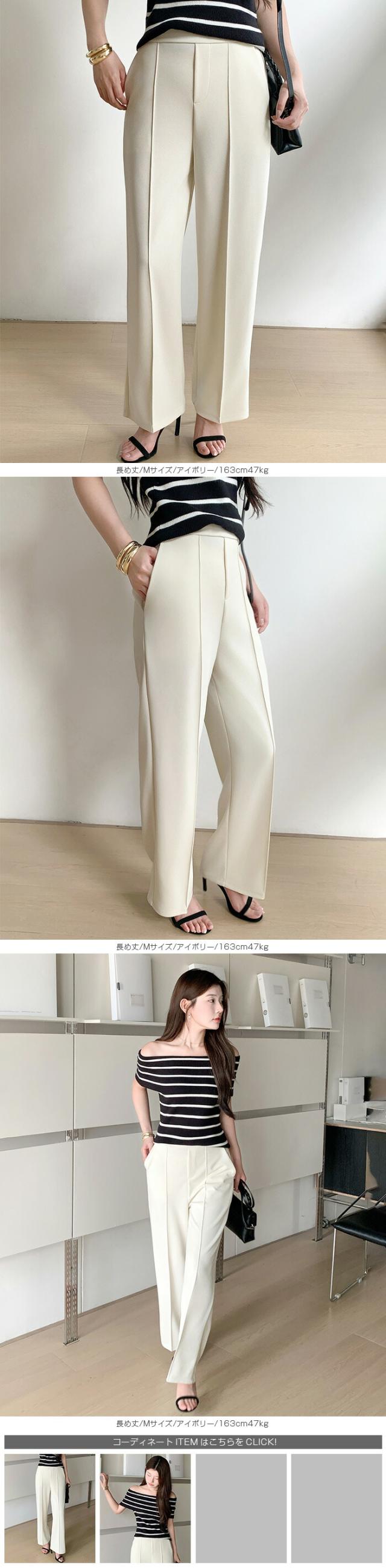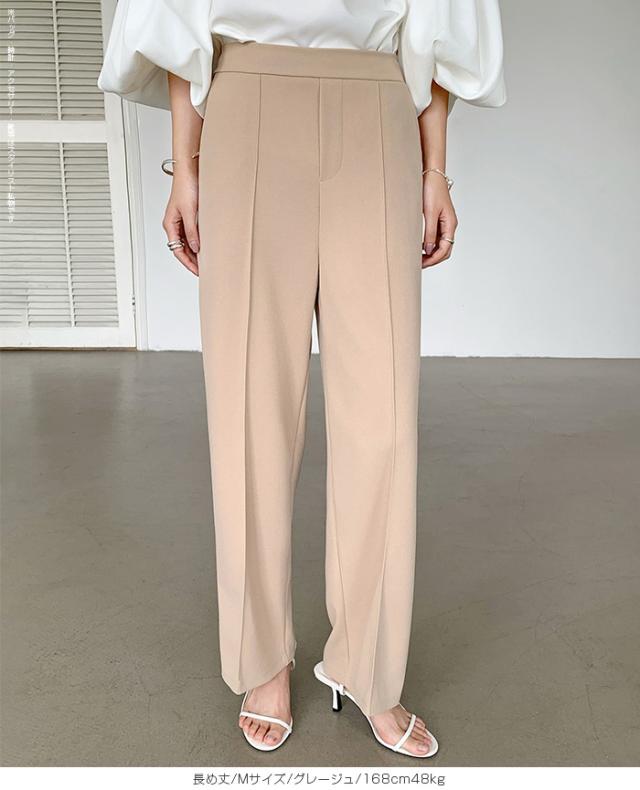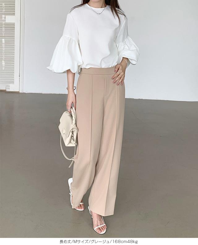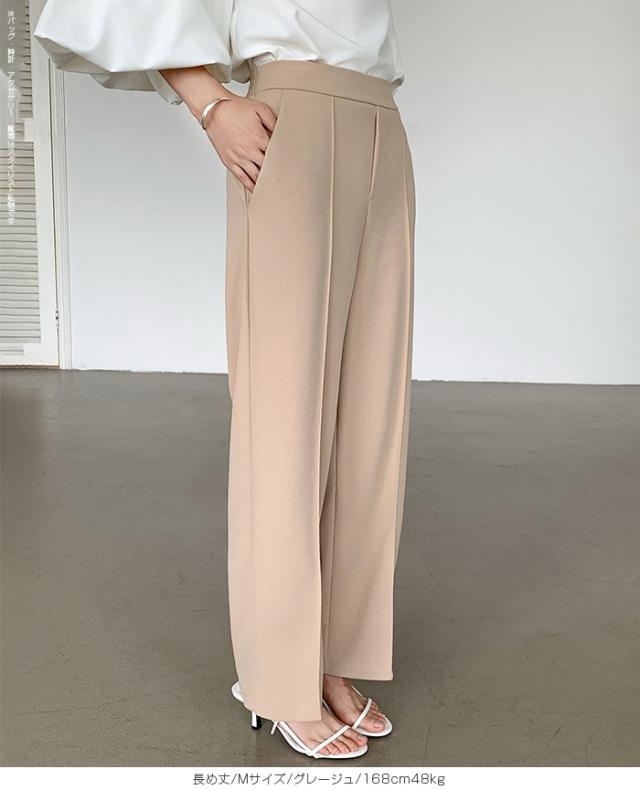 【 選べる2生地 ピンタック入りストレッチワイドパンツ 】