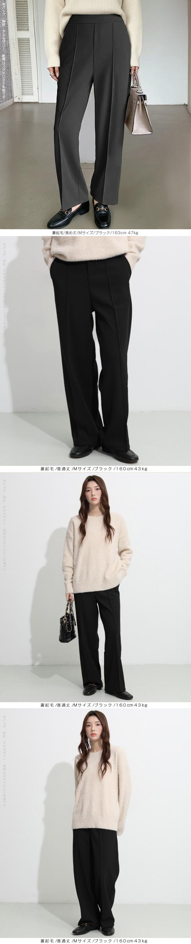 - 裏起毛がふわふわで温かいです。身長158センチ普通丈でビッタリ。腰回りはやや大きめで楽チンです。キレイめなので通勤用にしています。安いし、大満足です。