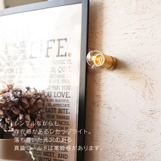 ポルカ E26 レセップライト ストレート ブラス 日本製 真鍮 ブラケットライト 壁付け照明 ウォールライト 天井 壁 照明器具 レセップ照明 円柱型 小さい シンプル ゴールド 1灯用 裸電球 おしゃれ コンパクト 高級感 間接照明 agesugi_sis