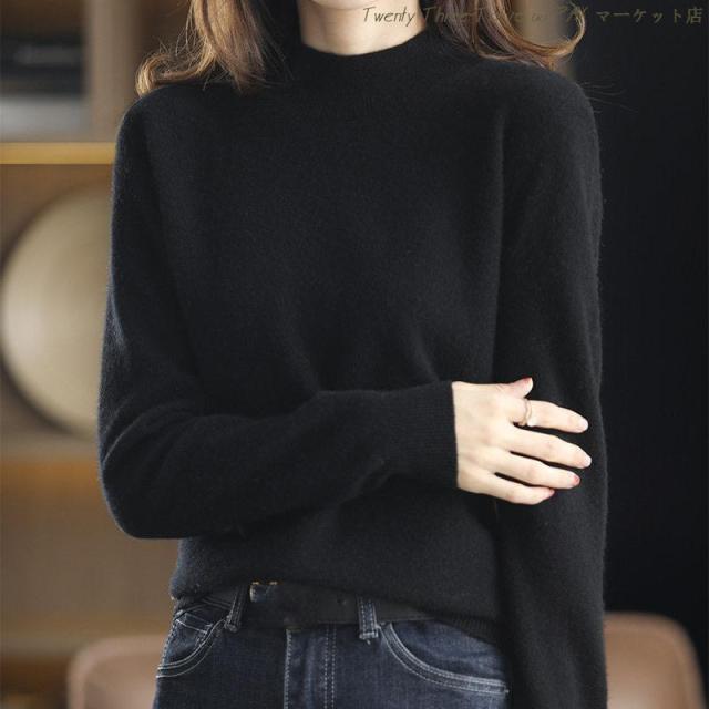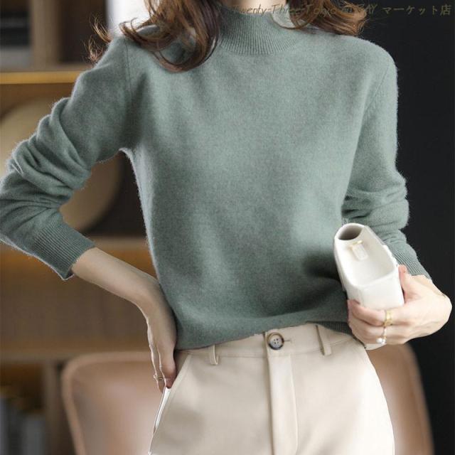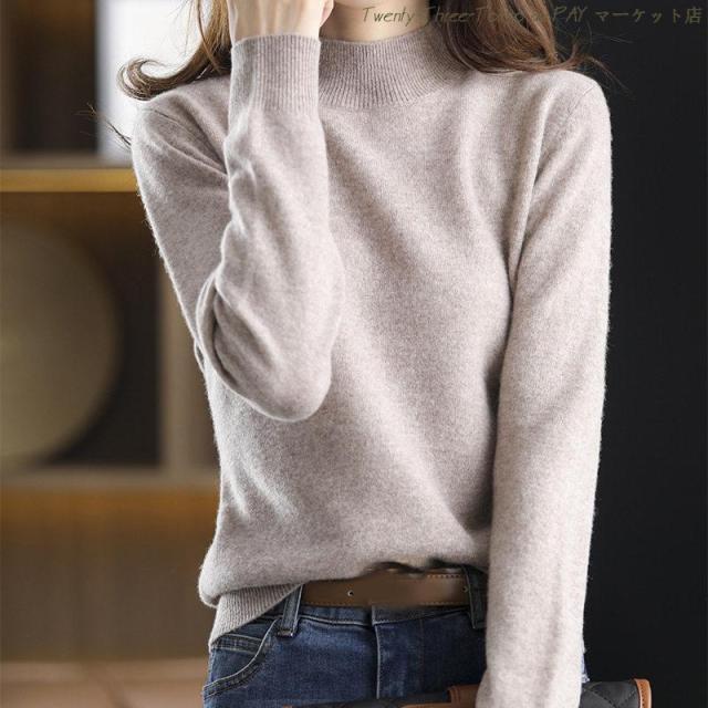 送料無料 ニット セーター ハイネック ニット レディース セーター 長袖 秋 冬 春 カットソー コージーニット プルオーバー ニットトップス 無地