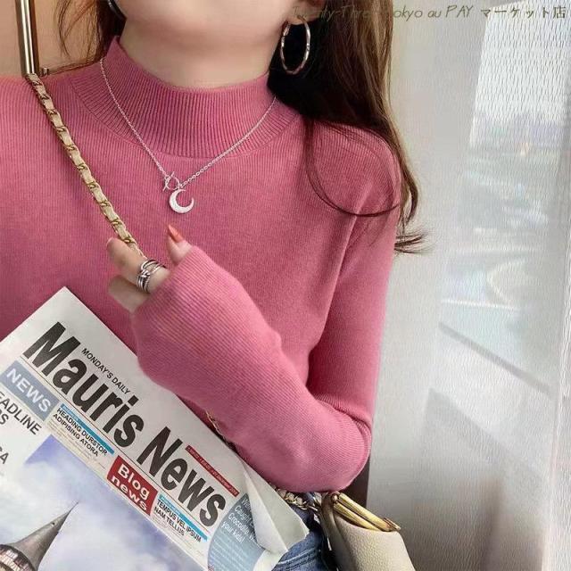 送料無料 セーターニット レディース ハイネック トップス タートルネック 長袖 柔らかい シンプル ストレッチ ゆったり 防寒 無地 通勤