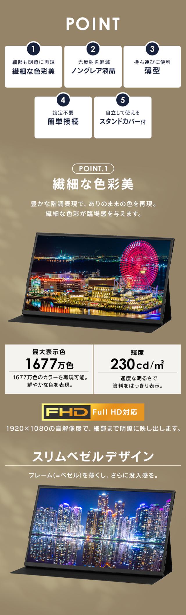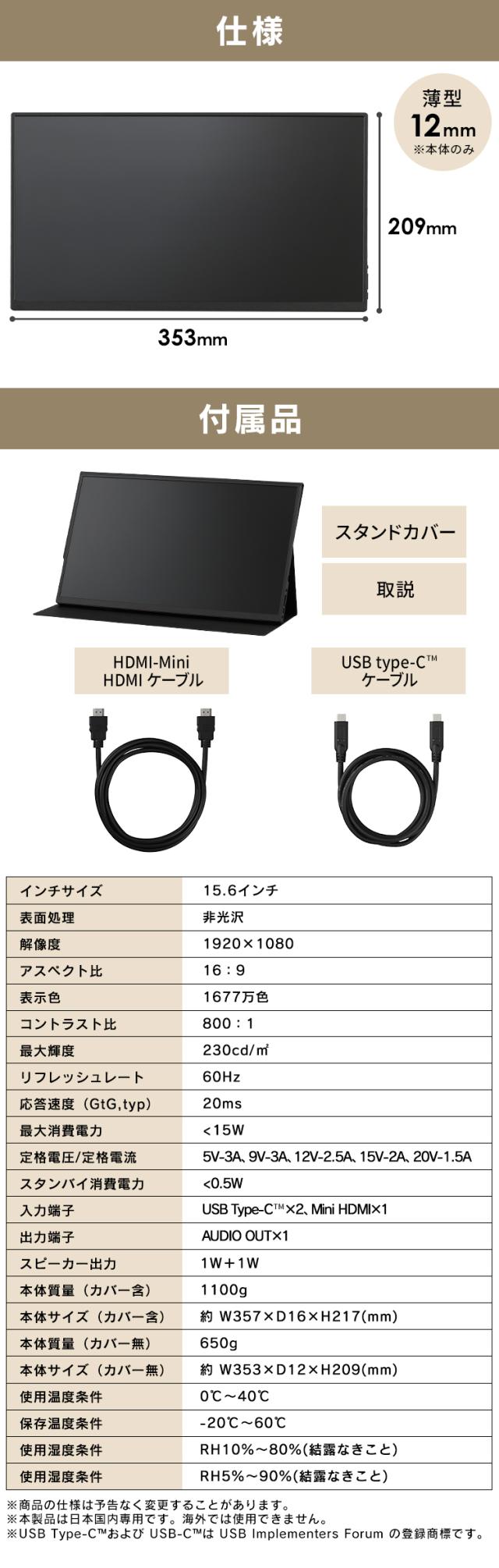 [検索用:モバイルモニター pcモニター 15.6インチ ゲーミングモニター 安い 高画質 USB-C minihdmi カバー付き 軽量 薄型 ノングレア 4967576768481]