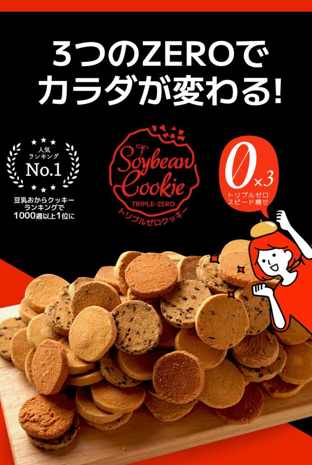 トリプルZEROクッキー 訳あり ダイエットクッキー おからクッキー 小麦不使用 卵不使用 砂糖不使用 グルテンフリー 大豆粉 おから 大豆 大豆スイーツ 大容量 たっぷり 大盛り 置き換え 腹持ち 食物繊維