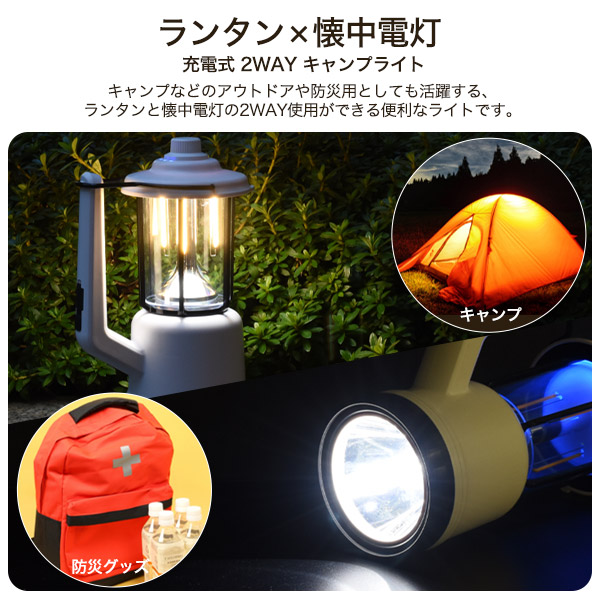 キャンプライト 2WAY 充電式 懐中電灯 ランタン キャンプ アウトドア 防災用 非常用ライト スマホ タブレット 充電可能 災害 防災グッズ LEDライト 置き型 ライト ハンドライト 防災用品 防災 地震 台風 大雨 停電 対策 レジャー 登山 備え 会社 事務所