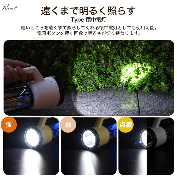 【関連キーワード】【関連キーワード】キャンプ用ライト キャンプグッズ キャンプ用品 アウトドアグッズ アウトドア用品 アウトドア用ライト 車中泊 充電式ライト 置き型懐中電灯 ハンドライト ランタン型ライト 防災用ライト 防災グッズ 防災用品 台風対策 停電対策 モバイルバッテリー代わり スマホ・携帯など充電可能 会社 企業 避難所 備え