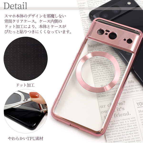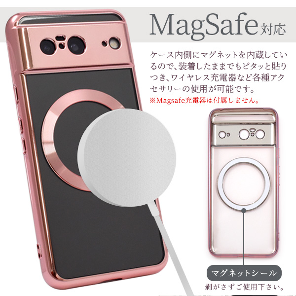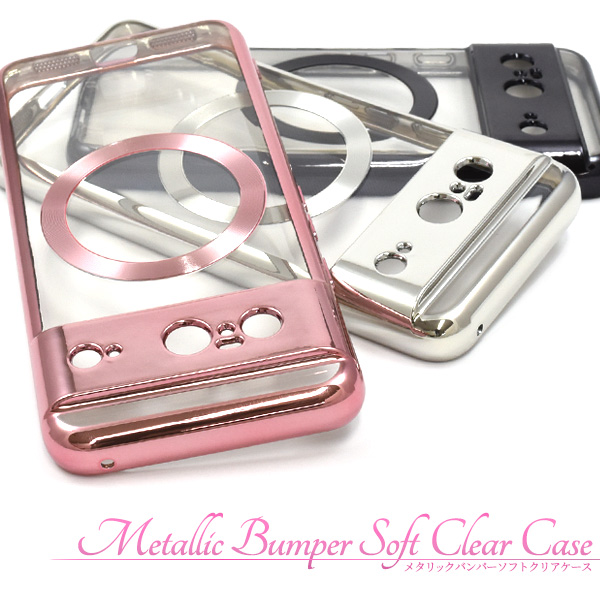スマホケース Google Pixel8用 MagSafe対応 メタリックバンパー ソフトクリアケース オシャレ GooglePixel8用 背面保護 スマホカバー 上品 装着簡単 携帯ケース お洒落 ゴールド シルバー ピンク シンプル スリム スマホケース 携帯ケース エレガント