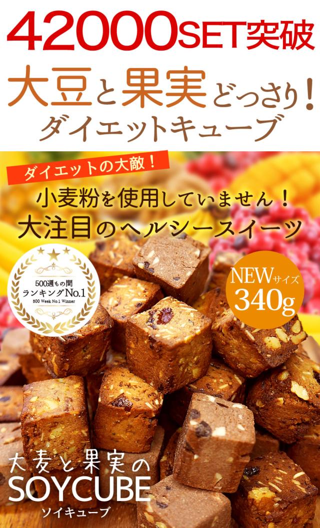 大麦と果実のソイキューブ 340g 送料無料 小麦粉不使用 グルテンフリー ヘルシー スイーツ ダイエット 大豆スイーツ 置き換え 腹持ち 食物繊維 アーモンド レーズン チョコチップ