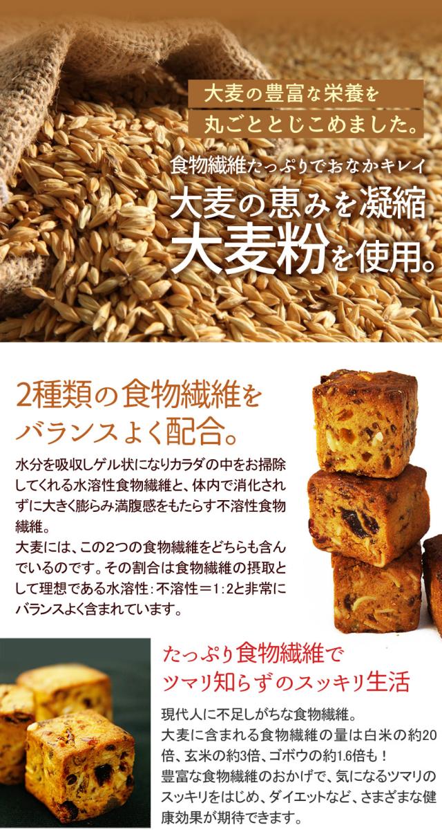 | ダイエットジャンル1位 次世代ヘルシースイーツ 1粒でお腹満足! 3粒も食べると満腹!? コロンと可愛いキューブ形でポイッと手軽に食べられちゃう♪小麦粉のかわりに大麦粉と大豆粉を使いとってもヘルシーに焼き上げました♪ 不溶性食物繊維と水溶性食物繊維がバランスよく含まれているので、満腹感だけでなく、気になるツマリにも♪ドライフルーツのやさしい甘さにチョコチップとアーモンドが美味しさにコクを与えます♪ 1日1食を置き換えるだけでダイエット!たっぷりの水分と一緒に食べると1個で満足!3個食べると満腹になってしまうほど!? |