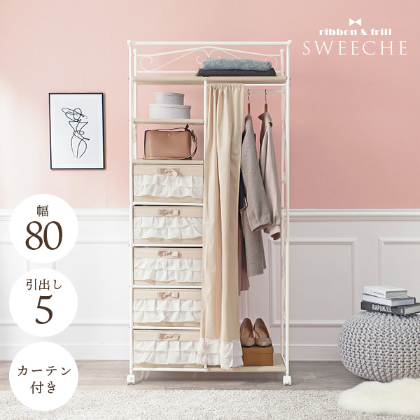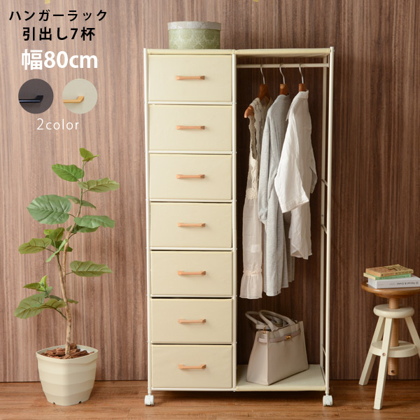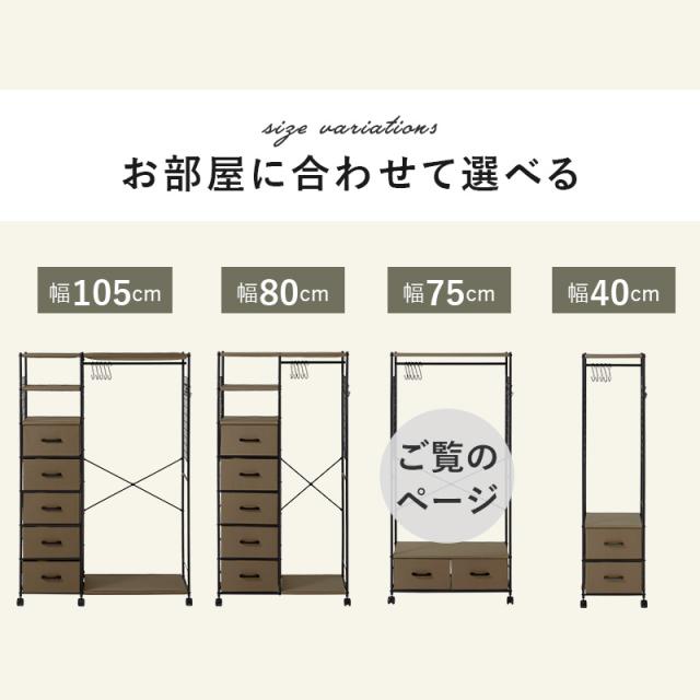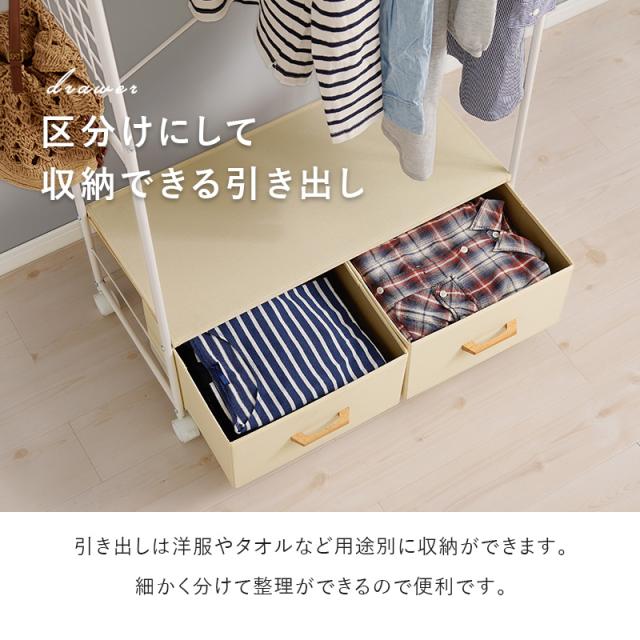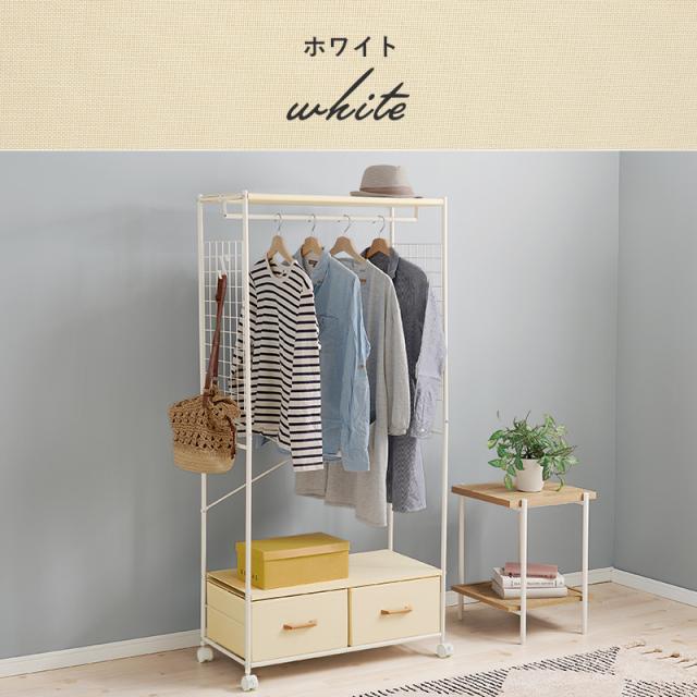 ハンガーラック スリム 頑丈 チェスト おしゃれ 白 2段 引き出し 北欧 収納 パイプハンガー 洋服掛けラック コートハンガー 幅75cm 収納付き キャスター パイプハンガーラック コートラック