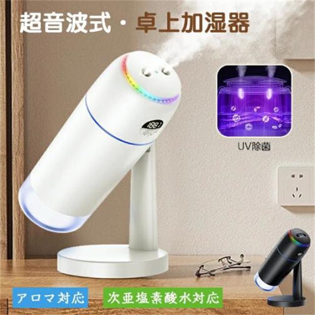 送料無料【UV除菌&マイナスイオン】 加湿器 卓上 小型 500mL 大容量 卓上加湿器 LCDディスプレイ表示 ダブルノズル 上下180°角度調節 コードレス USB充電式 超音波式加湿器5200mAh大容量バッテリー