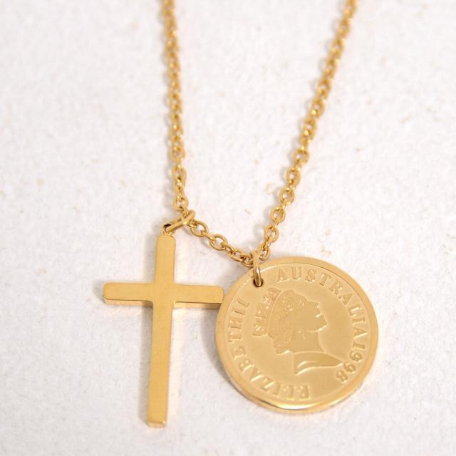 ネックレス メンズ アクセサリー おしゃれ シンプル コイン クロス ファインスチール 十字架 金貨 プレゼント ゴールド 贈り物 ギフト 記念日 おしゃれ クリスマス Brodiaea ブローディア 大人 男 男性 春 夏 秋 冬 秋冬 ファッション 郵 即日発送 [220006N]