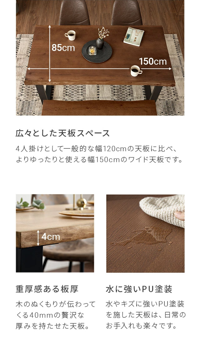 ダイニングテーブル 4人掛け 幅150cm ダイニング テーブル 食卓テーブル ナチュラル 木製 天然木 木製テーブル ウッドテーブル 長方形 4人用 四人掛け 四人用 新生活