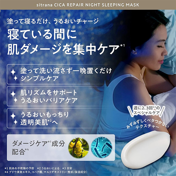 sitrana シラトナ シカリペア ナイトスリーピングマスク 80g 単品 1個売り 夜用 保湿マスク 就寝中 集中ケア ダメージケア アクティシカ配合 エイジングケア ブライトニングケア 肌を整える スキンケア用品 化粧品 美容グッズ 時短 肌ケア 透明肌 肌荒れ 肌あれ