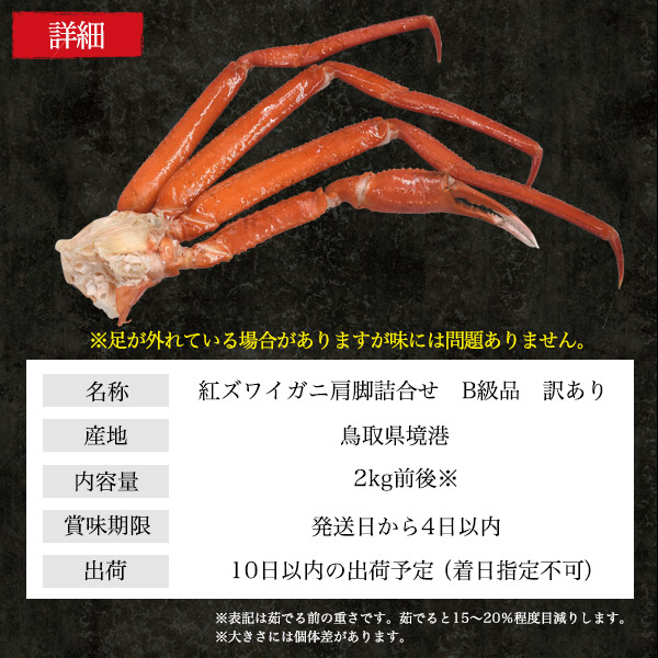 茹で紅ズワイガニ肩脚詰合せ B級品 訳あり 2kg