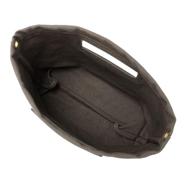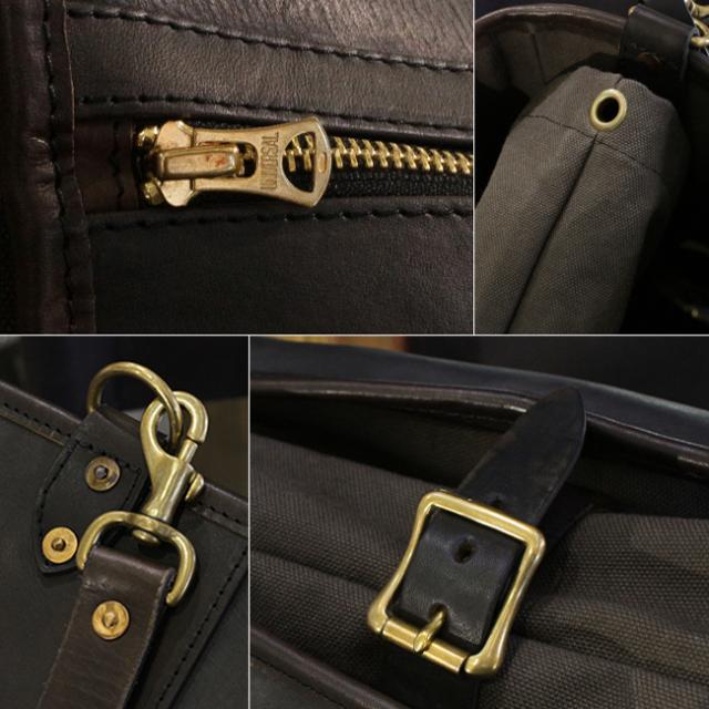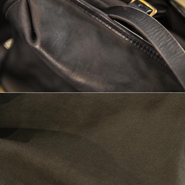 ミモザやチェスナットから抽出されたタンニンで鞣された、姫路産フルベジタブルタンニンレザーを“丘染め”と呼ばれる伝統的なハンドメイド製法で一枚一枚丁寧に染め上げた後、オイルをたっぷり染み込ませ、独自のコガシ加工によりヴィンテージのような風合いに仕上げたオリジナルレザー「OLD OIL」を使用。使い込むほどに艶と風合いが増し、長く経年変化をお楽しみいただけます。裏地はヴィンテージ感漂うキャンバス素材を使用しています。