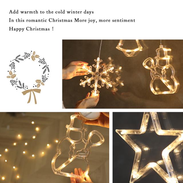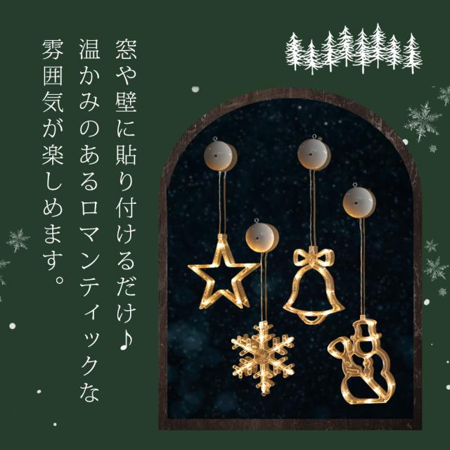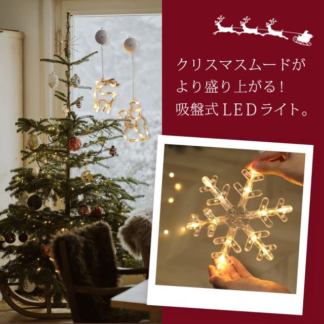イルミネーションライト クリスマス 飾り 吸盤式ライト 電池式 吸盤式 led パーティー 雪の結晶 ベル トナカイ 星 雪だるま 新年 結婚式 屋外 飾り付け デコレーション 窓 出窓 電飾 室内 お部屋 インテリア 子供 可愛い お洒落 単四電池使用 送料無料