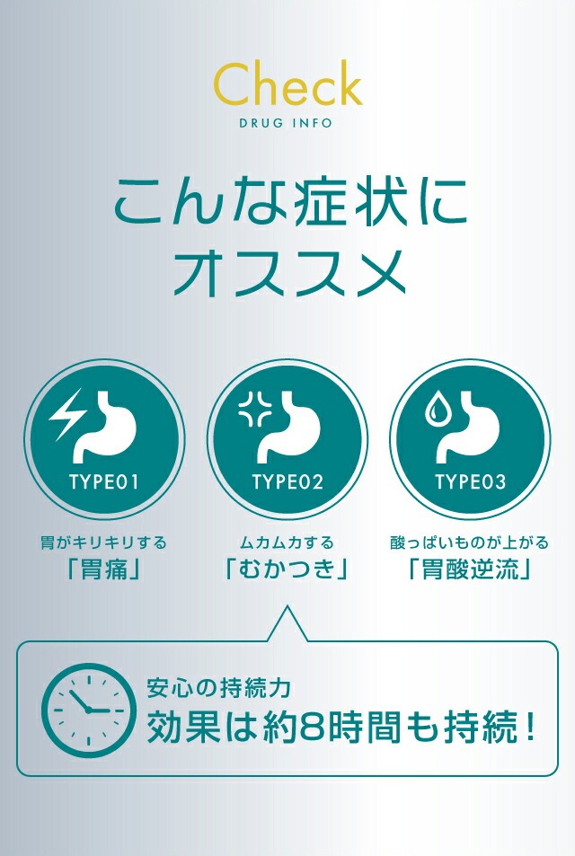 胃痛、胸やけ、もたれ、むかつき(本剤はH2ブロッカー薬を含んでいます)