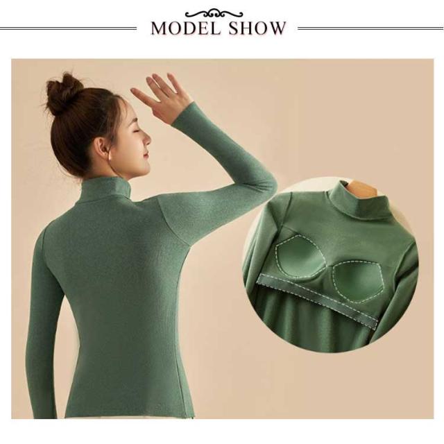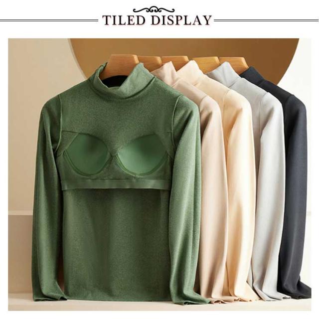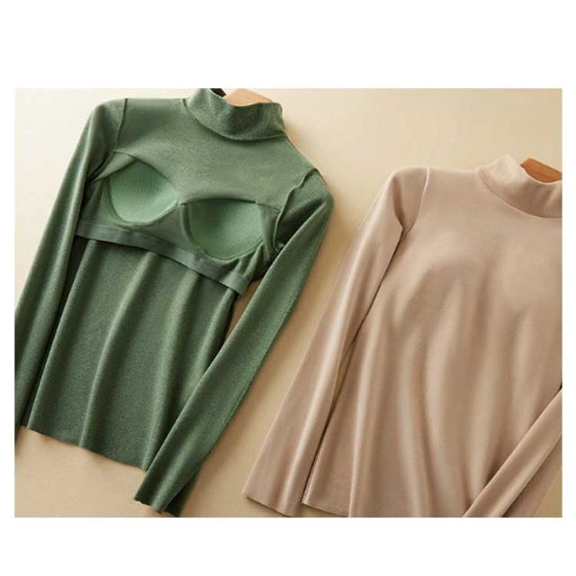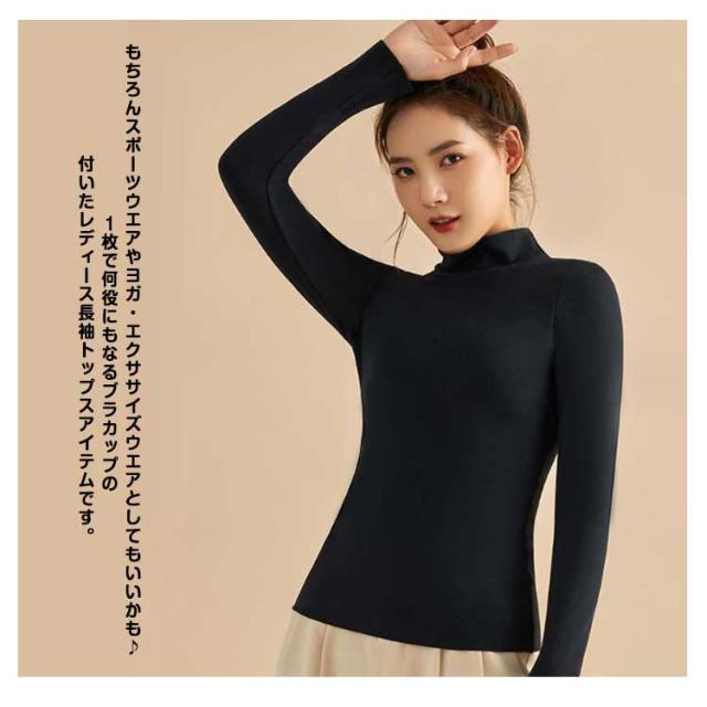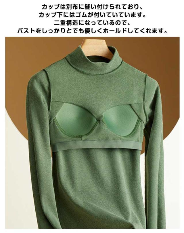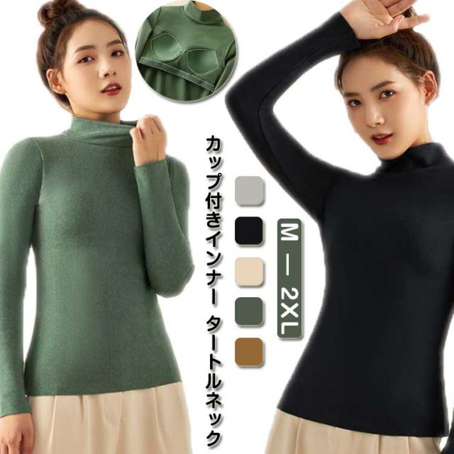 カップ付きインナー タートルネック 裏起毛 ハイネック カップ付き ブラトップ インナー 裏起毛 レディース 大きいサイズ カットソー Tシャツ 肌着 部屋着 アンダーウエア ストレッチ 伸縮性 締め付けない シンプル 無地 女性 春 秋 冬