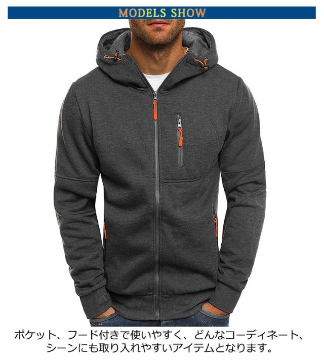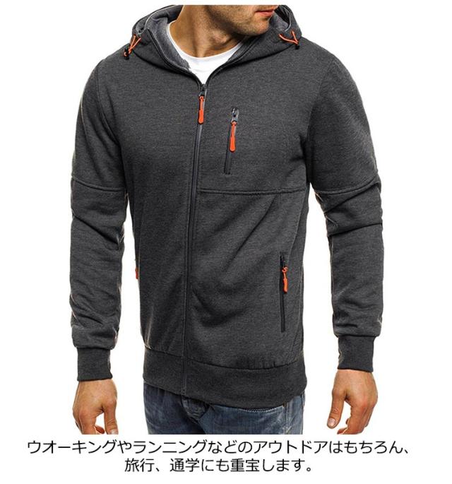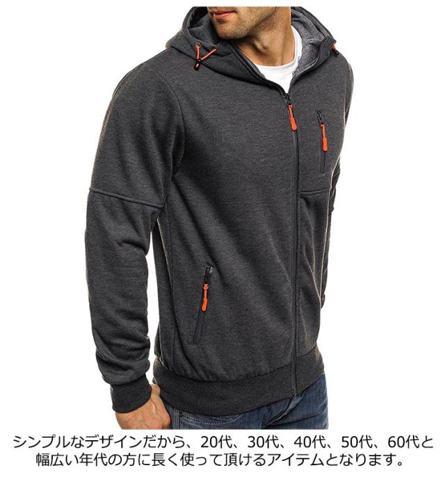 パーカー メンズ ジップアップ 前開き ジップパーカー ジャケット カジュアル アウター 冬 コート 紳士 フード付き トップス 春秋 大人男性 快適 おしゃれ カーディガン ジップアップパーカー 無地 シンプル スポーツウエア 大きいサイズ 送料無料