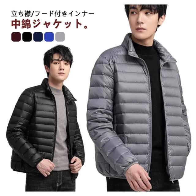 軽量 立ち襟 長袖 メンズ ジャケット メンズ フード 2タイプ あったか 細身 中綿コート インナージャケット ジャンパー 大きいサイズ ショート パーカー 無地