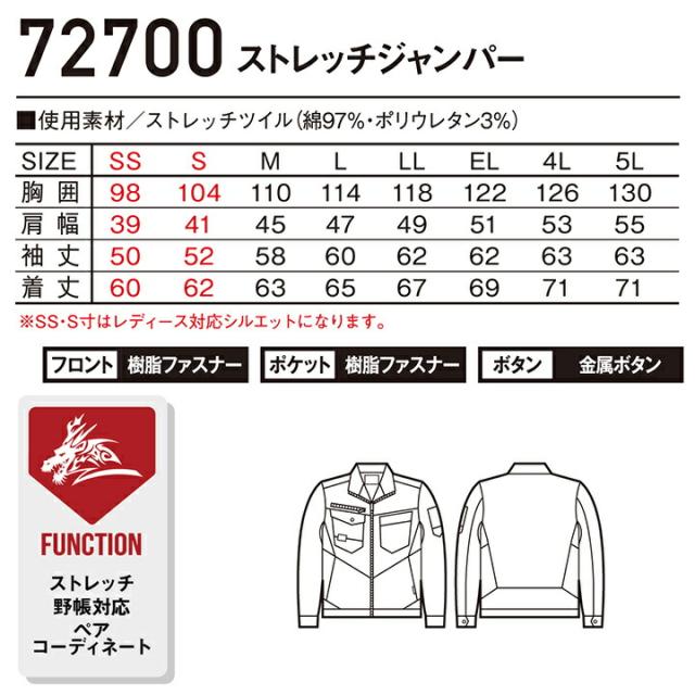 ストレッチジャンパー 長袖ジャケット Z-DRAGON 72700 秋冬 男女兼用 ストレッチ メンズ レディース ブルゾン 作業服 作業着 自重堂