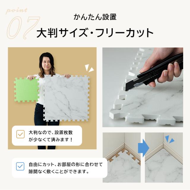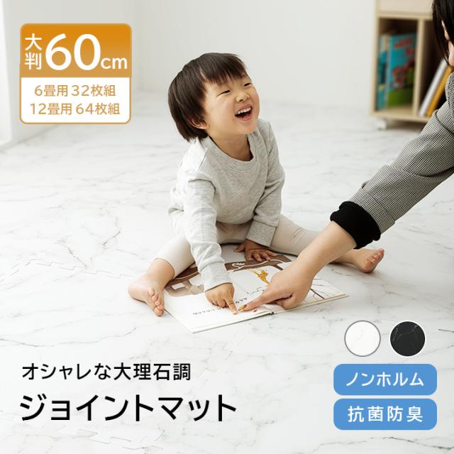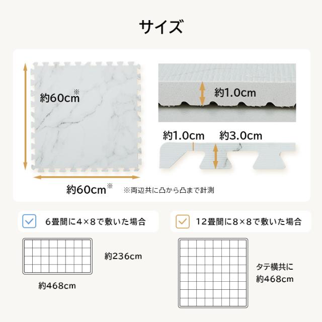 大理石調 ジョイントマット 大判 64枚組 12畳 60cm ジョイントマット 防音 抗菌 防臭 洗える 子供部屋 カーペット ベビー フロアマット おしゃれ 床暖房 ホットカーペット 対応 新生活