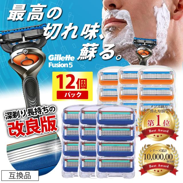 ジレット替刃 ジレット プログライド 替刃 フュージョン 替え刃 12個 男性 メンズ 互換性 電動 パワー 5枚刃 プロシールド 13 髭剃り gillette シェーバー カミソリ