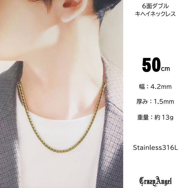 キヘイネックレス キヘイチェーン 喜平ネックレス 喜平チェーン メンズ ステンレス スティール 6面ダブル 6面カット 50cm ゴールド 金属アレルギー 対応