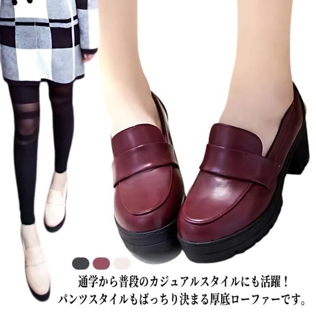 7cmヒール 厚底 ローファー 学生 女子 学生靴 ローファー レディース パンプス コインローファー 革靴 スクールシューズ チャンキーヒール マニッシュシューズ 定番 フォーマル 通勤 通学 入学式 制服 コスプレ 学生 カジュアル マニッシュ 歩きやすい 疲れにくい