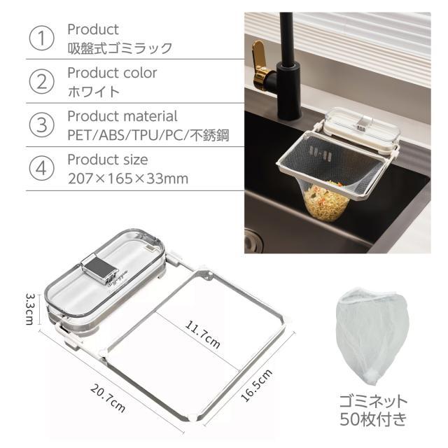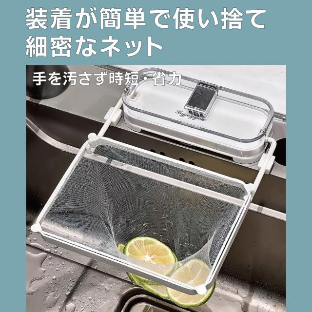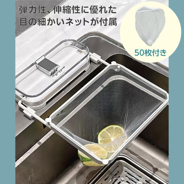 水切りネット ホルダー 吸着式 シンク 取り換えネット50枚付き 三角コーナー 棚 折りたたみ 袋 ネット ゴミ箱 生ゴミ キッチン用品 gomi-rack02 agesugi_snk