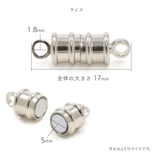 マグネット式 クラスプ 円筒型 17mm シルバーカラー 磁石式留め具 ネックレス ブレスレット アンクレット 留め具 アクセサリーパーツ 手作りアクセ 素材 パーツ レトロ 手芸 工作 修理 ハンドメイド用素材 手作りアクセサリー パーツ
