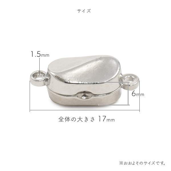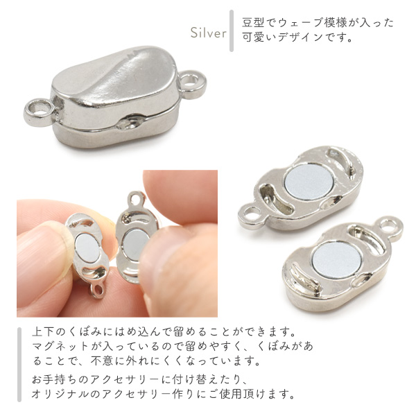 マグネット式 クラスプ 豆型 17mm シルバーカラー 磁石式留め具 ネックレス ブレスレット アンクレット 留め具 アクセサリーパーツ 素材 手作りアクセ パーツ レトロ 手芸 工作 修理 ハンドメイド用素材 手作りアクセサリー パーツ