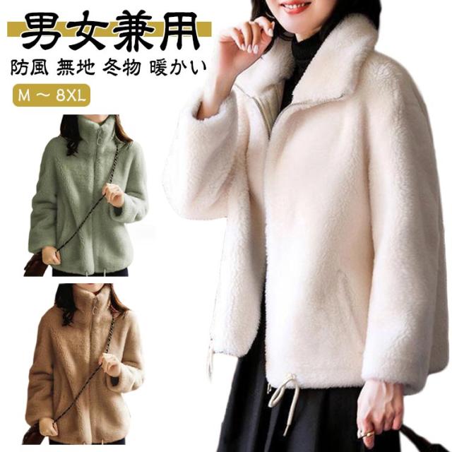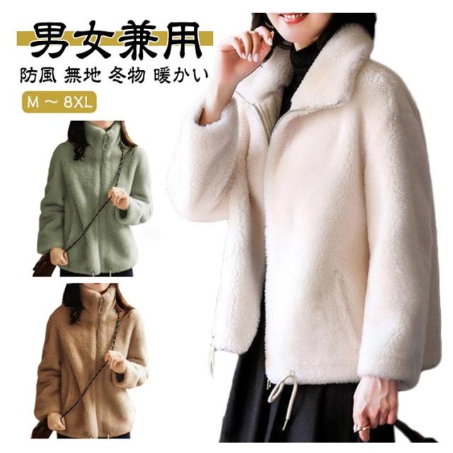 ジャケット メンズ アウター ボア ボア 韓国 ボアジャケット 冬 男女兼用 防風 ベージュ 白 大人 ジャケット もこもこ スタンドカラー モコモコ ジャケット フリース 防寒着 カジュアル ゆったり 無地