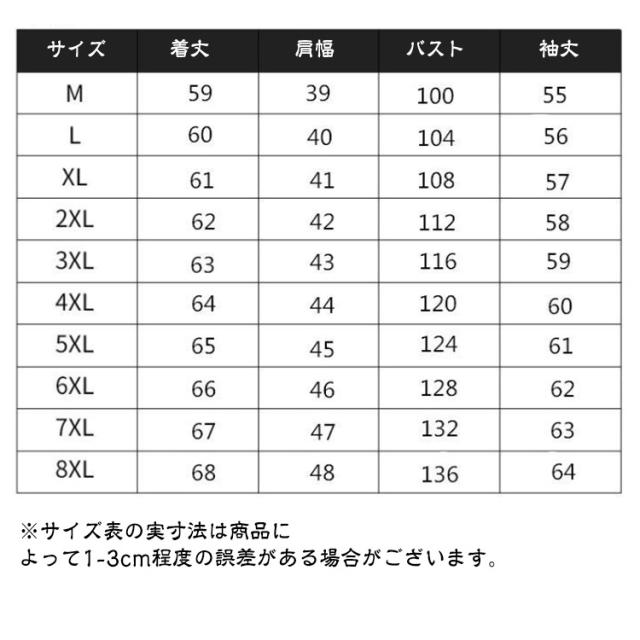 | サイズ | M L XL 2XL 3XL 4XL 5XL 6XL 7XL 8XL |