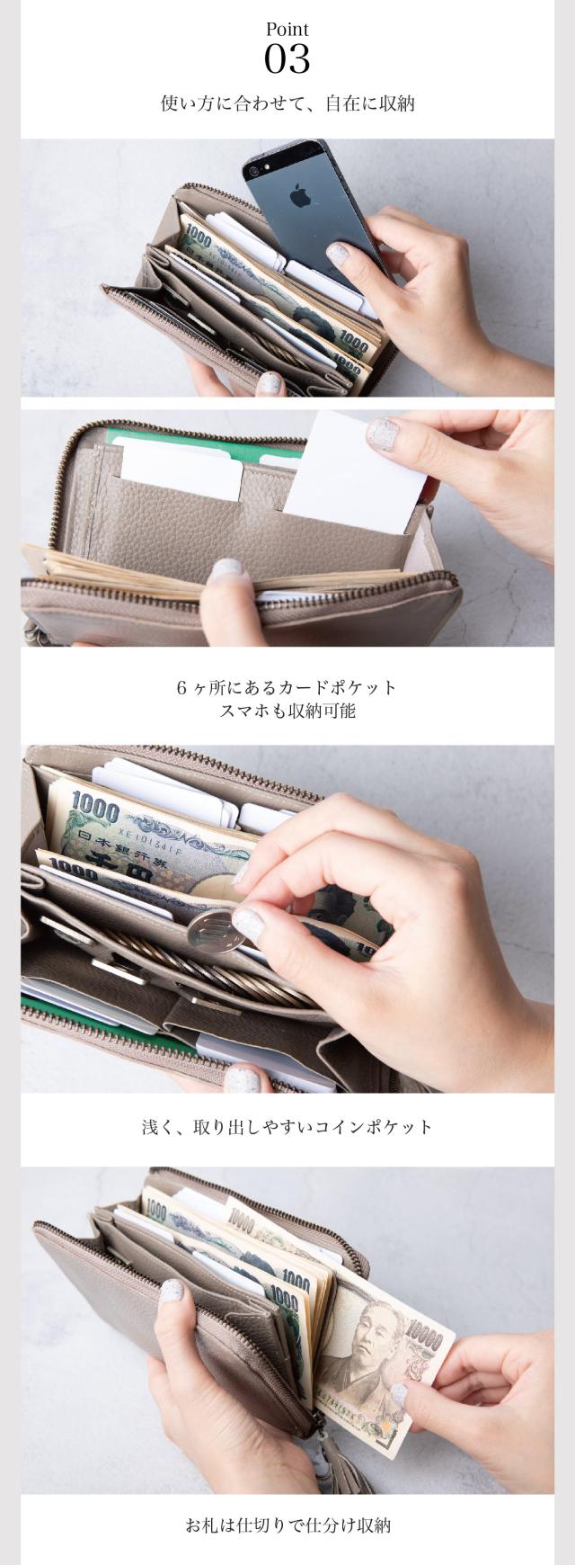最大で紙幣50枚、カード24枚を収納できる。整理整頓がしやすく誰でも仕分け上手になれる。