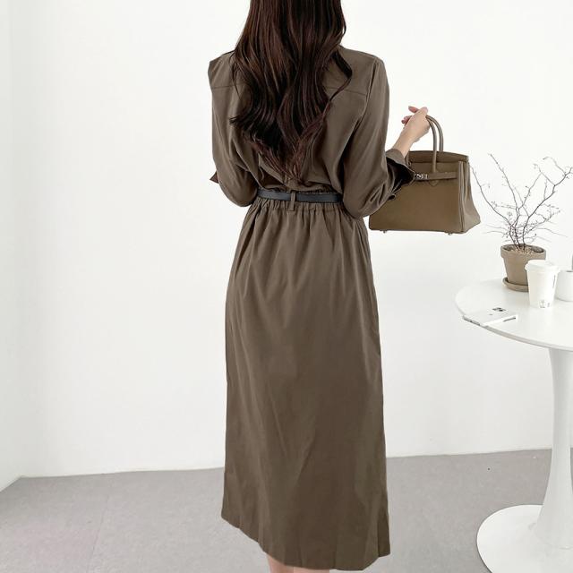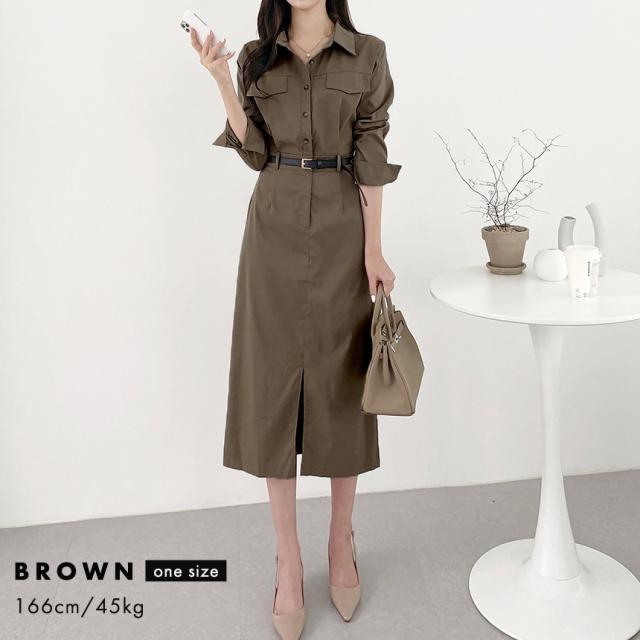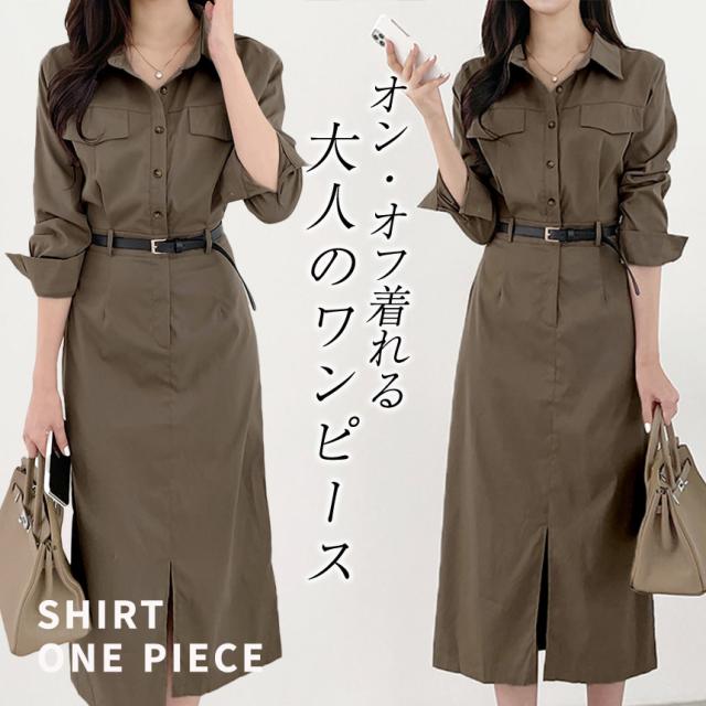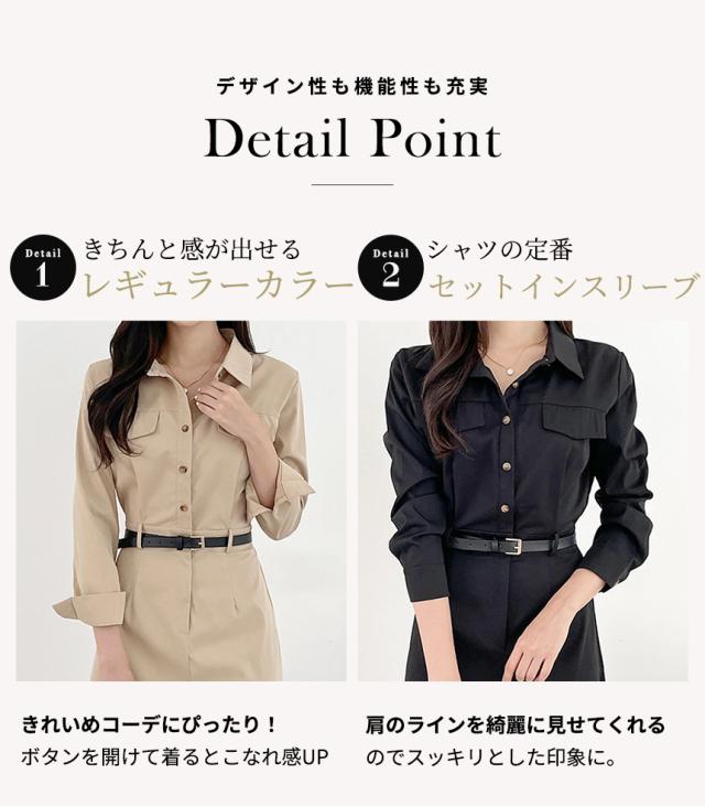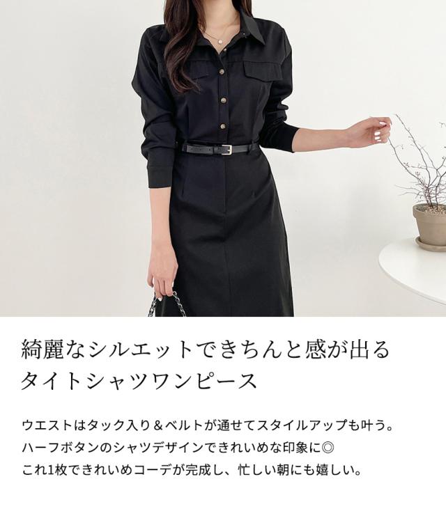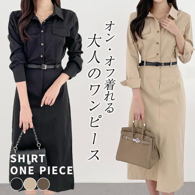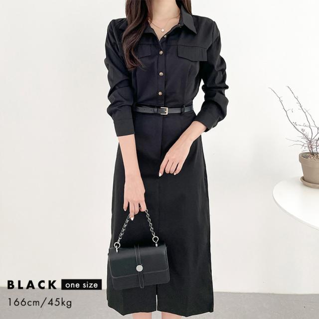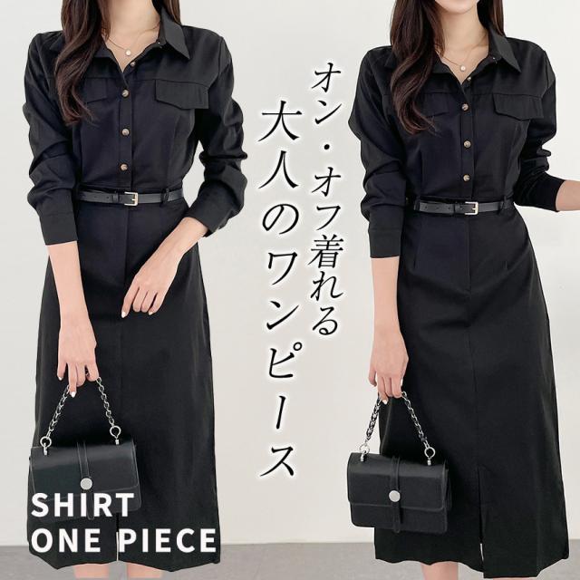 ワンピース レディース 長袖 ロング 入学式 卒業式 黒 シャツワンピース きれいめ 春 秋 ビジネス カジュアル シンプル おしゃれ バック Aライン