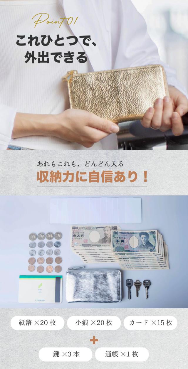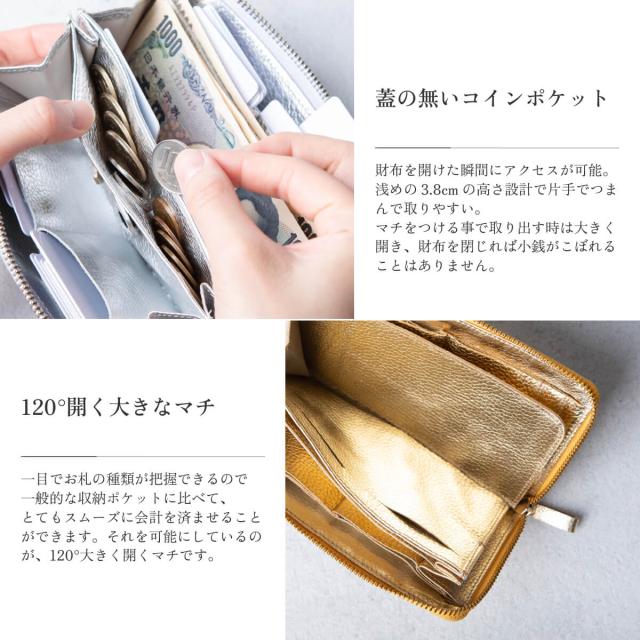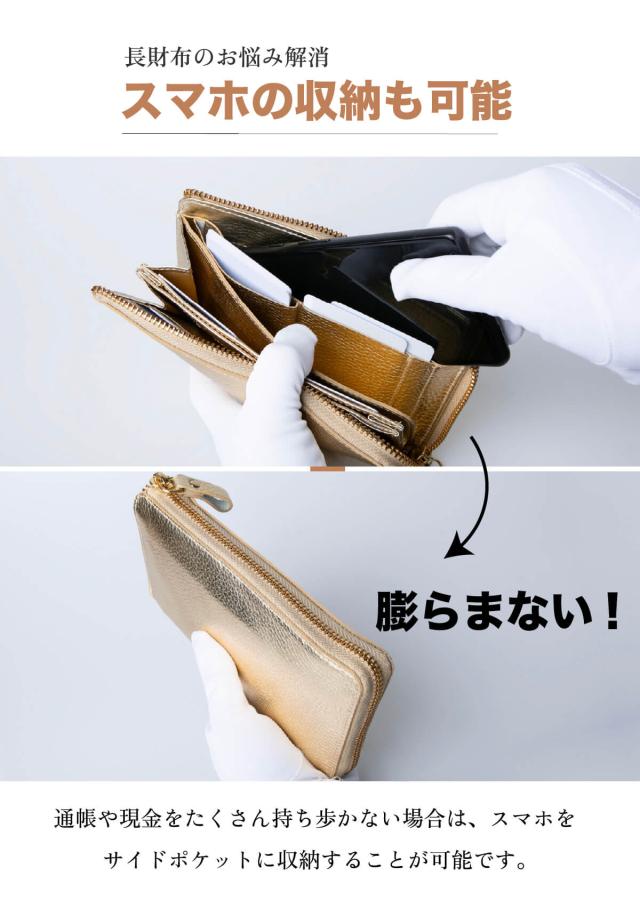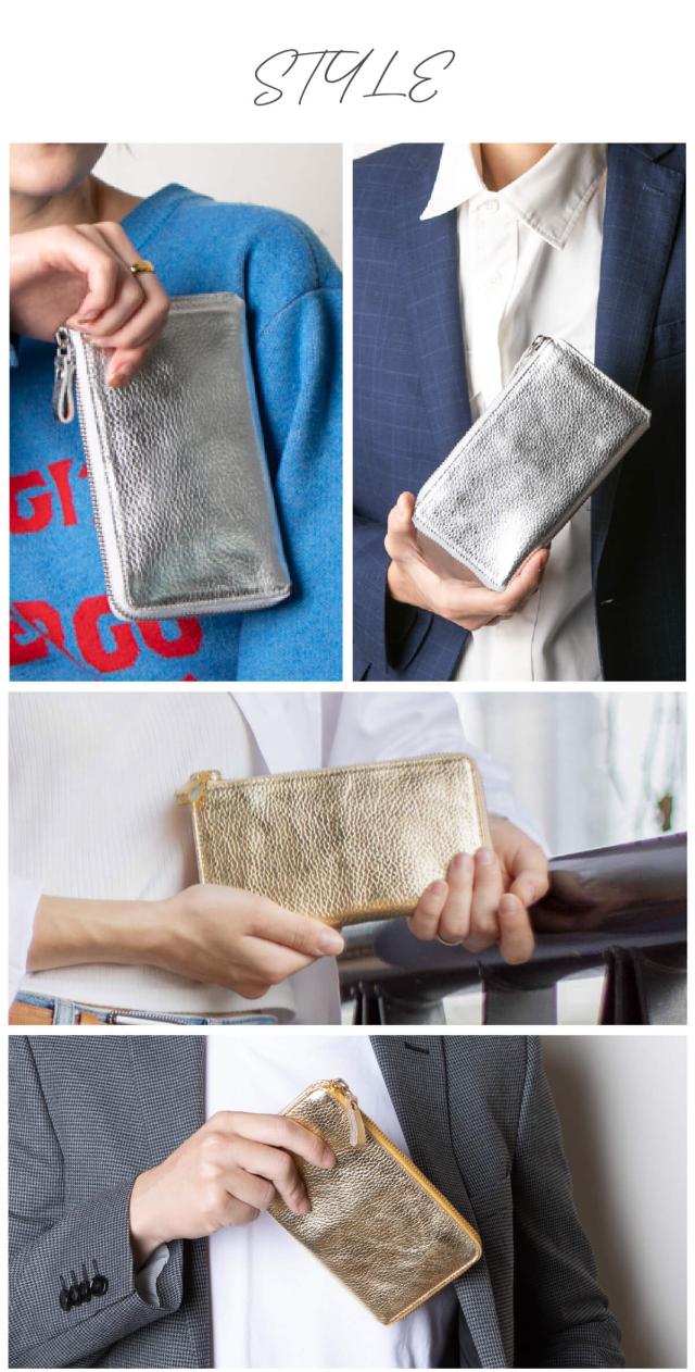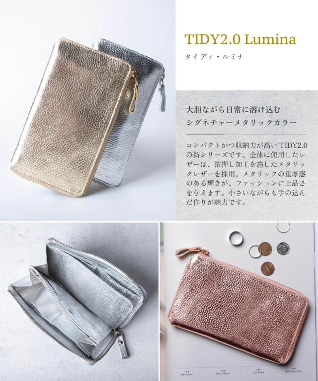 財布 本革 小さい長財布 TIDY2.0 TIDY タイディ シルバー ゴールド メタリックレザー 防水 撥水 スキミング防止 長財布 レディース メンズ 大容量 小さい財布 コンパクト スリム 薄い l字ファスナー ギフト おすすめ 人気