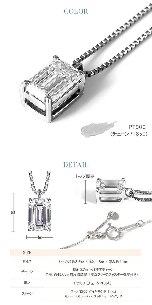 ダイヤモンド ネックレス 一粒 ダイヤモンドネックレス ダイヤネックレス 1カラット エメラルド 角 一粒ダイヤ プラチナ PT900 PT850 ラボグロウン レディース ジュエリー アクセサリー シンプル ブランド 誕生日 クリスマス プレゼント 女性 ギフト