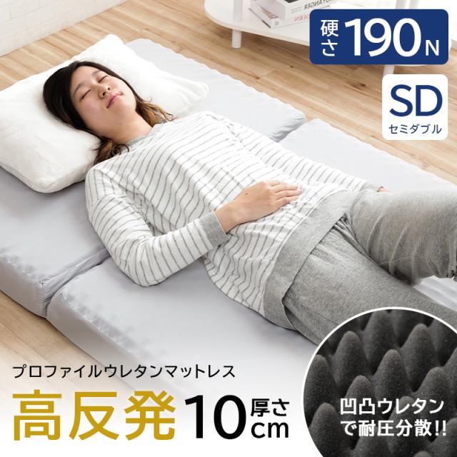 マットレス セミダブル 三つ折り 高反発 10cm プロファイル 3つ折り 厚さ10cm 体圧分散性 SD 高反発マットレス 高反発マット 洗える カバー ベッドマット 折畳み 190N 25D 敷布団 敷き布団 凹凸 新生活