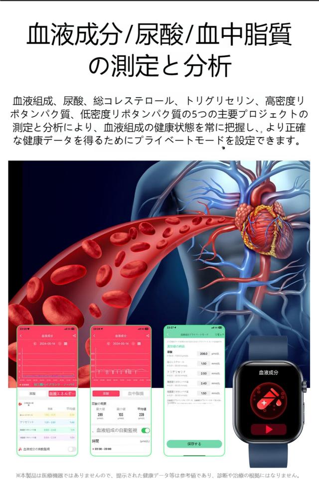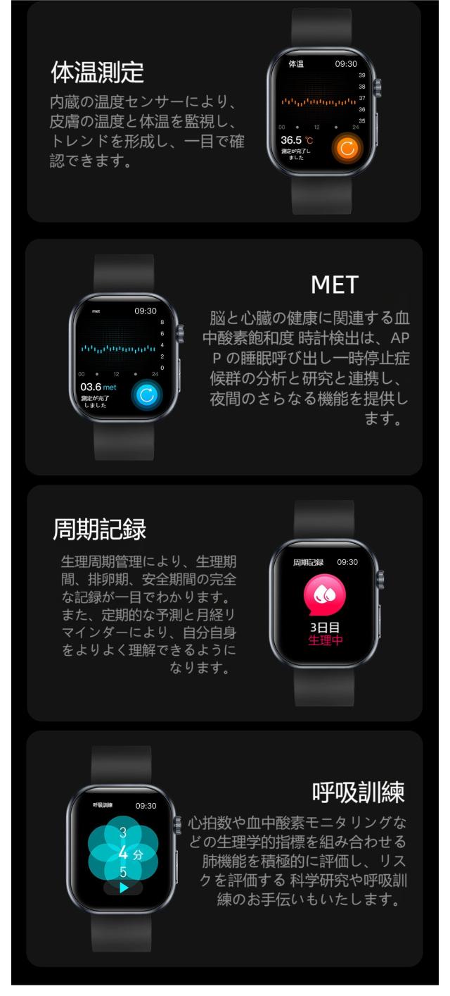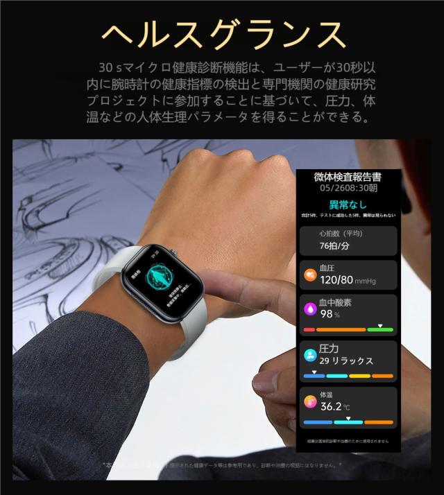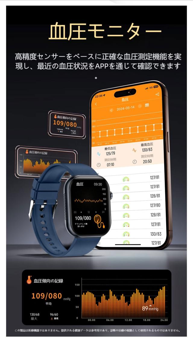 2.本製品の心拍数・血圧数計測機能は補助用のみで、精確度は光吸収と循環、血圧、皮膚状況など生理原因による誤差があります。精密測定の医療機器として使用するにはご遠慮ください。