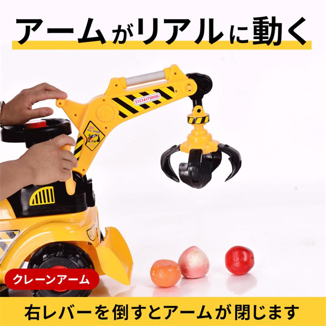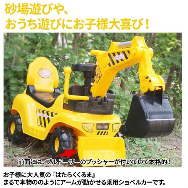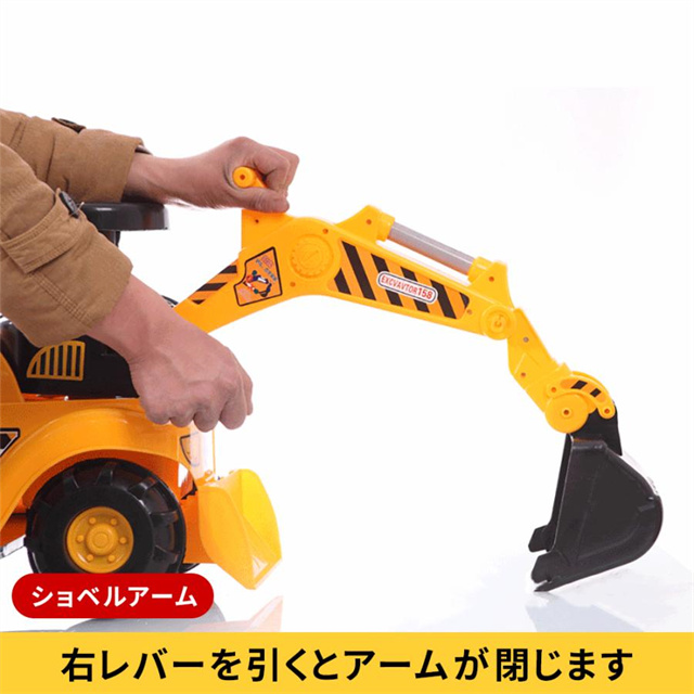 まるで本物ののようにアームが動かせる乗用ショベルカーです。
