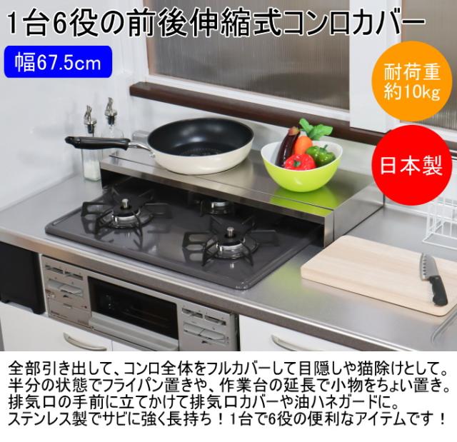 前後伸縮式ステンレスコンロカバー G-580 日本製 ステンレス コンロ コンロカバー 伸縮タイプ 鍋置き 汚れ防止 目隠し 作業台 調理台 猫除け 油はね ガード 排気口カバー キッチン 燕三条製