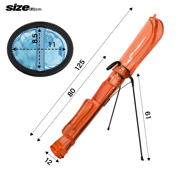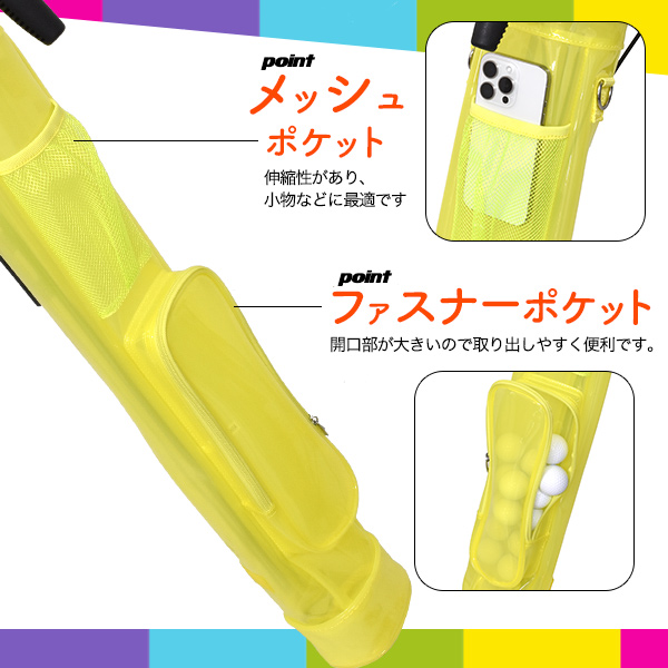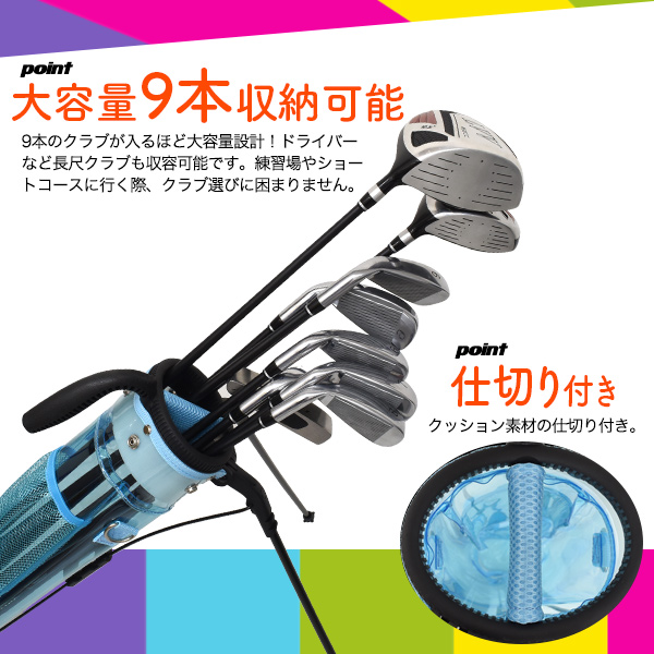 セルフスタンド ゴルフクラブケース スケルトンカラー 9本収納 軽量 クラブ9本収納可 撥水加工 ゴルフ用品 練習場 ショートコース ゴルフ 練習用 自立式 レディース メンズ かわいい 男性 女性 プレゼント 人気 オシャレ 派手 目立つ 送料無料