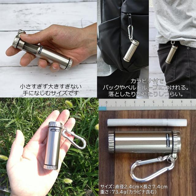 カラビナ付きで、バッグやベルトループにもつけられますので、持ち運びにも大変便利です。