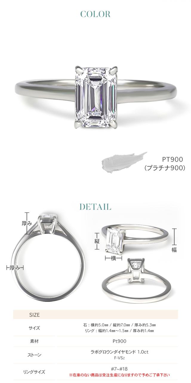 ダイヤモンド リング 指輪 レディース 1.0ct 一粒 プラチナリング スクエア ダイヤモンドリング ダイヤリング 角 一粒ダイヤ プラチナ PT900 ラボグロウン ホワイト ジュエリー アクセサリー シンプル ブランド 誕生日 クリスマス プレゼント 女性 ギフト