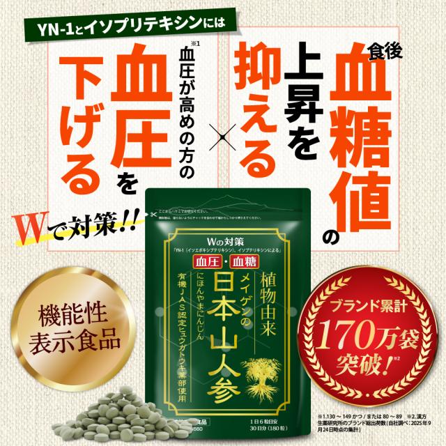 日本山人参 (30日分/180粒) ヒュウガトウキ 血圧が高めの方の血圧を下げる 食後血糖値の上昇を抑える 機能性表示食品 サプリ 有機JAS認定葉部使用 漢方生薬研究所