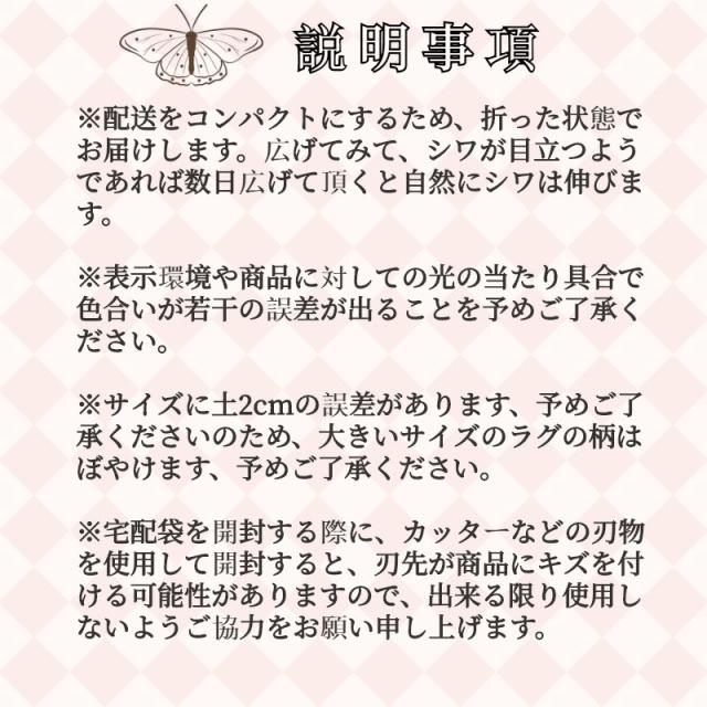 ・開梱時、ラグマット、カーペットの毛並みにムラなどがございますが、使用するにつれ、無くなります。